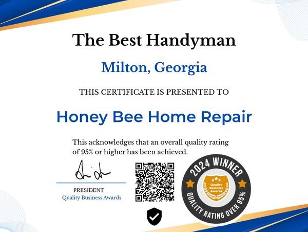 Honey Bee was awarded the Best Handyman Service in the Milton area. This was judged by our customer reviews. We are the highest rated handyman service in our service area.